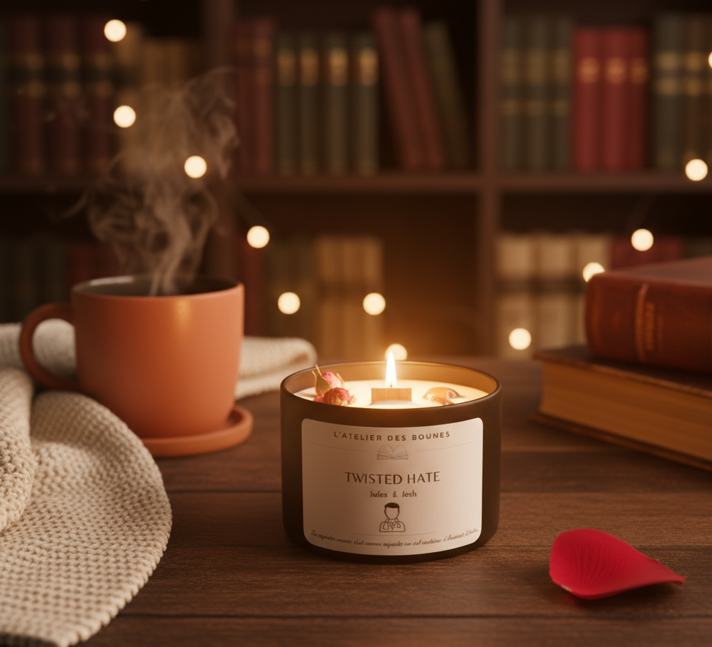 Découvrez l’univers olfactif de Twisted Hate d’Ana Huang grâce aux senteurs puissantes de cuir sensuellement envoûtante comme la relation de Josh & Jules.