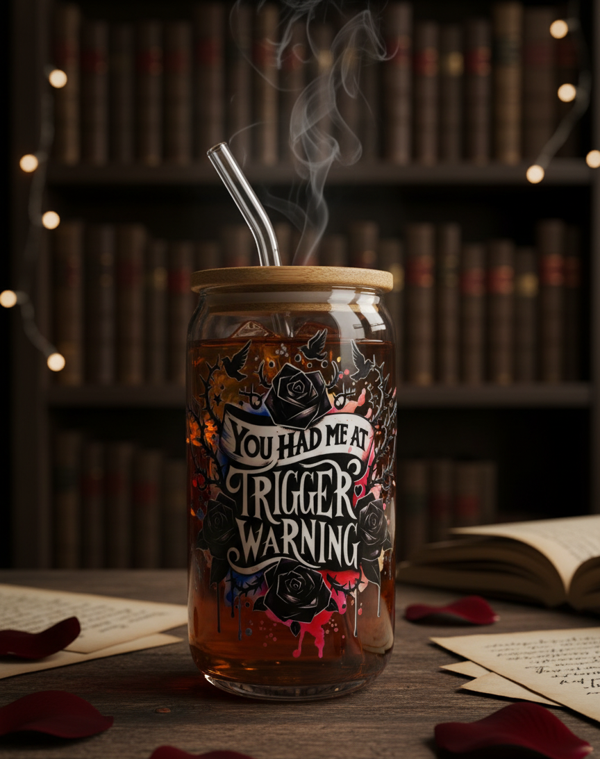 Ce verre est l'emblème de tous ceux pour qui l'amour ne rime pas toujours avec la perfection. Il célèbre les romances intenses, imparfaites, et complexes, celles qui nous attirent malgré le signal d'alarme. Le Verre 'Trigger Warning' est la preuve que vous êtes prêt(e) à plonger sans filet dans les histoires les plus sombres, car vous savez que c'est là que l'on trouve les émotions les plus fortes. Rejoignez le Lonely Hearts Book Club et savourez le danger à chaque page.
