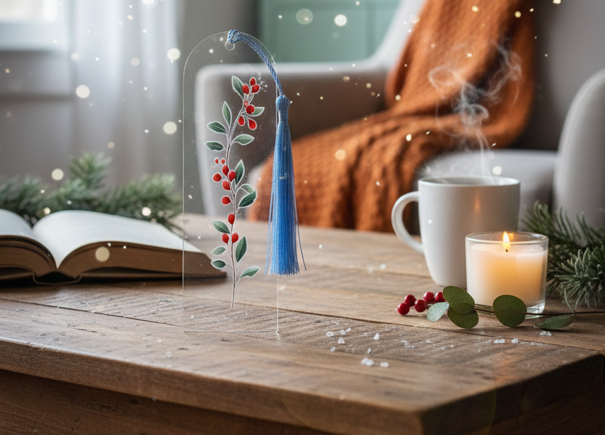 Ce marque-page rigide est parfait pour ceux qui recherchent l'élégance et le calme au milieu de l'agitation des fêtes. Il capture la beauté éthérée du givre matinal et la pureté des paysages enneigés, offrant une véritable bouffée d'air frais à votre rituel lecture.